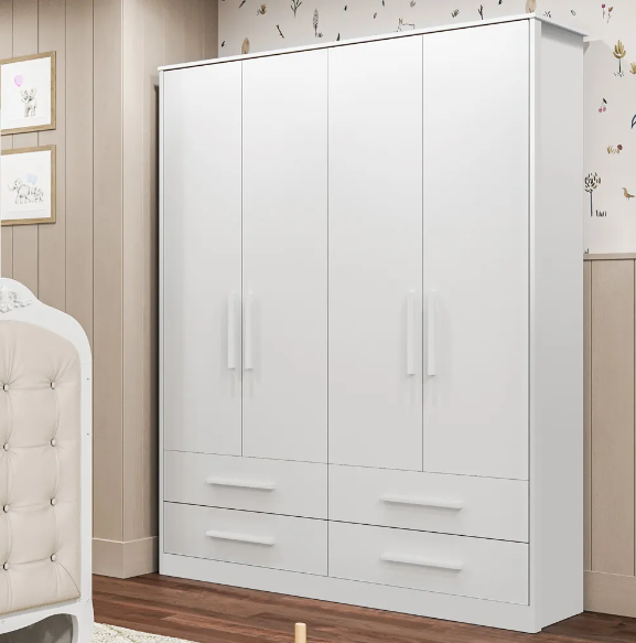 ARMARIO PEROBA CHARLO 4 PT LISA - BRANCO BRILHO